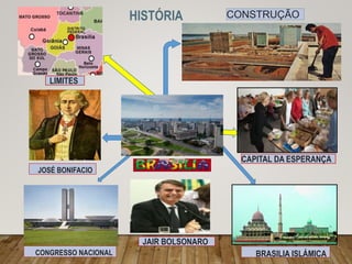 Brasília é a capital planejada do Brasil, construída em 1960 para ser o centro político do país. Alguns dos principais pontos turísticos incluem o Eixo Monumental, onde estão localizados prédios governamentais importantes, o Congresso Nacional e o Palácio do Itamarati. A gastronomia local é influenciada por culturas africanas, portuguesas e indígenas e inclui pratos como churrasco, arroz com pequi e pão de queijo.
