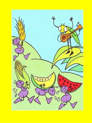 A história clássica da formiga trabalhadora e da cigarra preguiçosa é contada sem palavras através de imagens apenas, permitindo que as próprias crianças narrem a história.