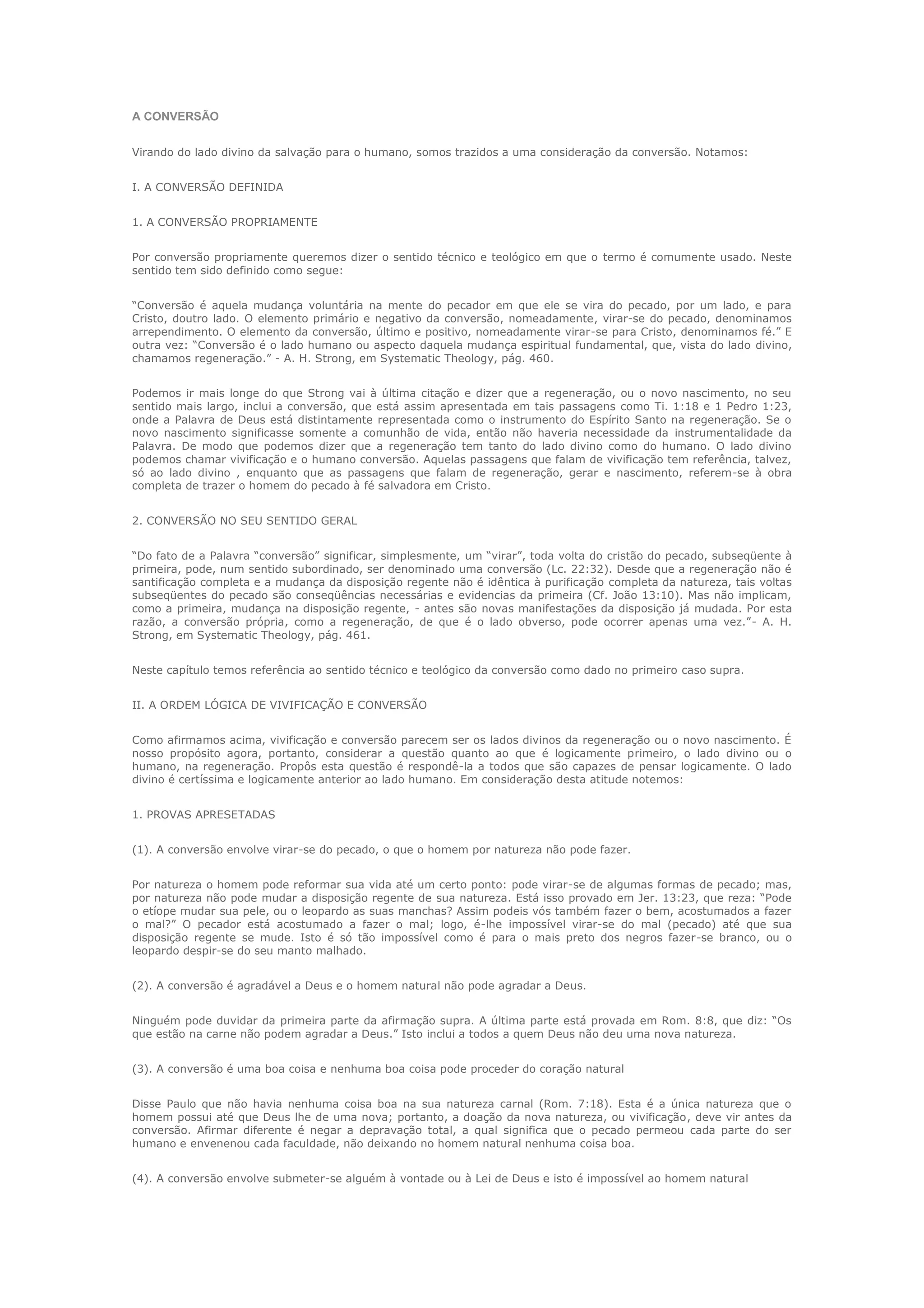 O documento discute a conversão e sua relação com a regeneração e vivificação. Afirma que: