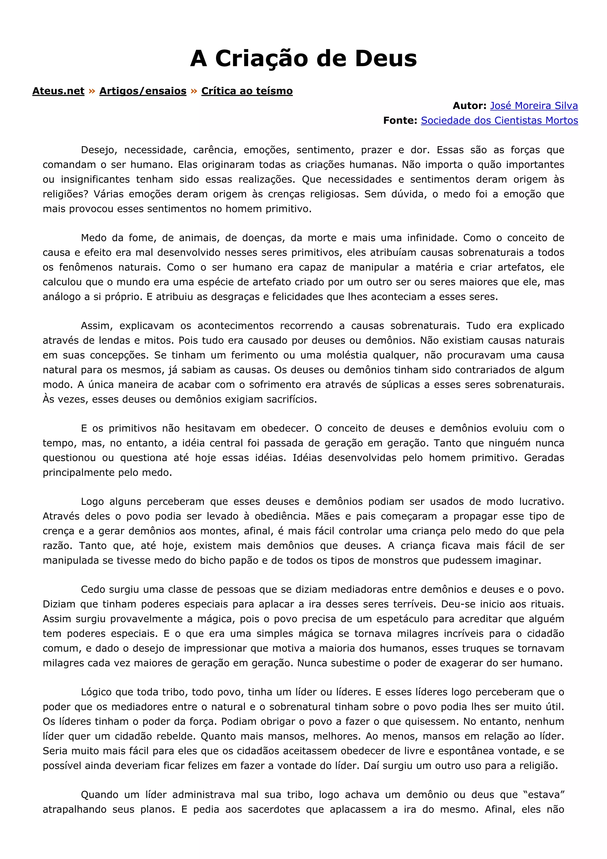 1) As religiões surgiram do medo dos humanos primitivos de fenômenos naturais e da morte, levando-os a atribuir causas sobrenaturais.