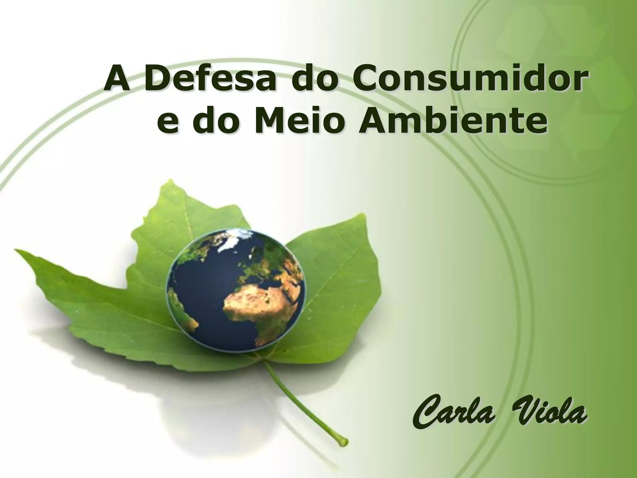 O documento discute a defesa do consumidor e do meio ambiente no Brasil. Apresenta a constituição de 1988 que estabeleceu a defesa do consumidor e a lei de 1990 que criou o Código de Defesa do Consumidor, protegendo os direitos básicos dos consumidores. Também aborda como o Código protege o meio ambiente em diferentes aspectos como publicidade, cláusulas contratuais e educação para o consumo sustentável.
