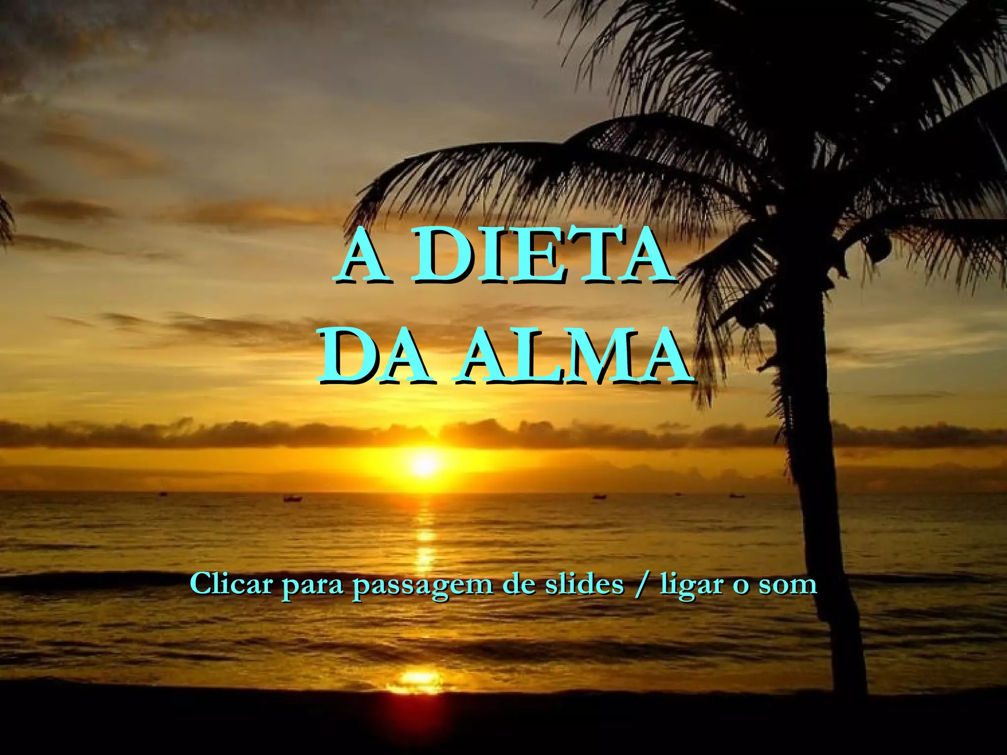 O documento prescreve uma "dieta para a alma" para eliminar sentimentos negativos como orgulho, inveja, amargura, vingança e ódio. A dieta propõe cortar esses sentimentos que produzem "lixo interior" e prejudicam a saúde e felicidade, da mesma forma que dietas físicas eliminam alimentos prejudiciais ao corpo. A dieta para a alma promoverá bem-estar liberando sentimentos positivos e trazendo paz interior.