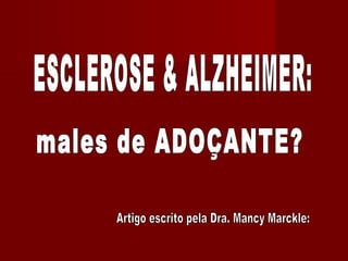 O documento discute os riscos à saúde do adoçante artificial aspartame, incluindo a ligação com doenças neurológicas como esclerose múltipla e lúpus. Quando aquecido, o aspartame se decompõe em metanol e formaldeído, que são tóxicos e podem causar problemas como acidose, náuseas e danos cerebrais. O documento pede que as pessoas parem de consumir produtos com aspartame e divulguem os riscos.