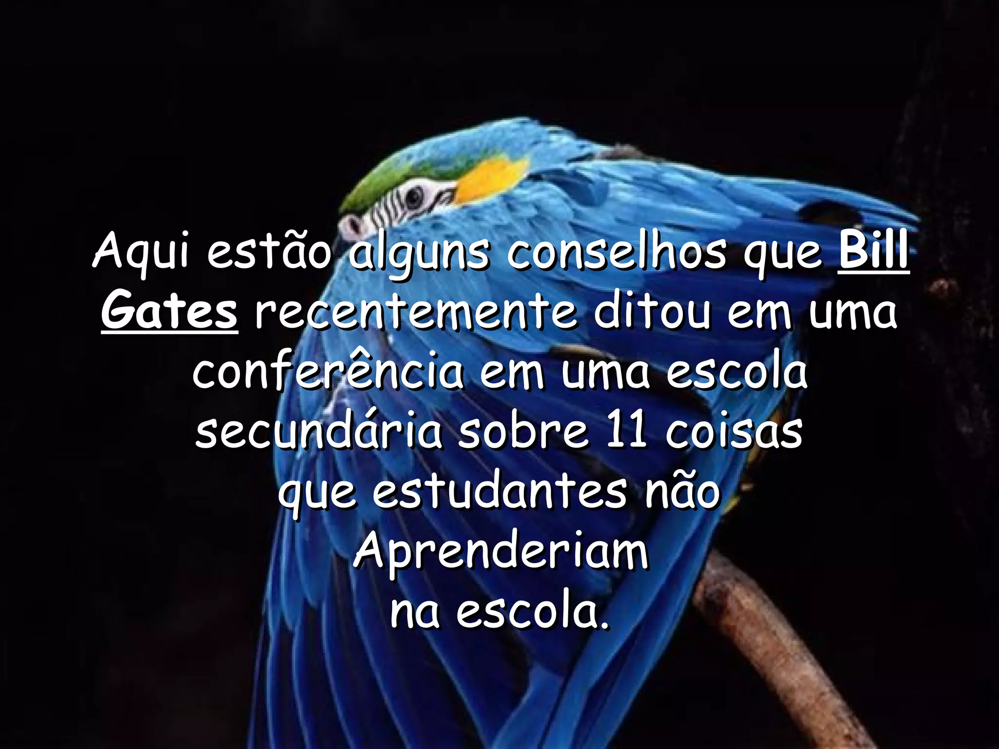 Bill Gates deu um discurso de menos de 5 minutos para estudantes de ensino médio sobre 11 regras da vida real que não são ensinadas na escola, como a dificuldade da vida, o mundo não se importar com a autoestima e não se tornar rico instantaneamente após a formatura. Ele criticou as políticas educacionais que não preparam adequadamente os estudantes para o mundo real.