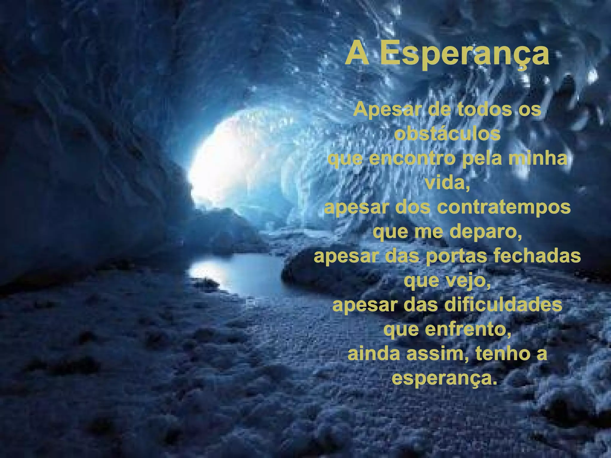 O documento descreve como a esperança permite que as pessoas continuem em frente apesar dos obstáculos da vida. A esperança vive dentro de nós e nos fortalece mesmo nos momentos mais difíceis, nos permitindo nunca desistir de nossos sonhos. A esperança traz a certeza de que coisas boas ainda acontecerão.