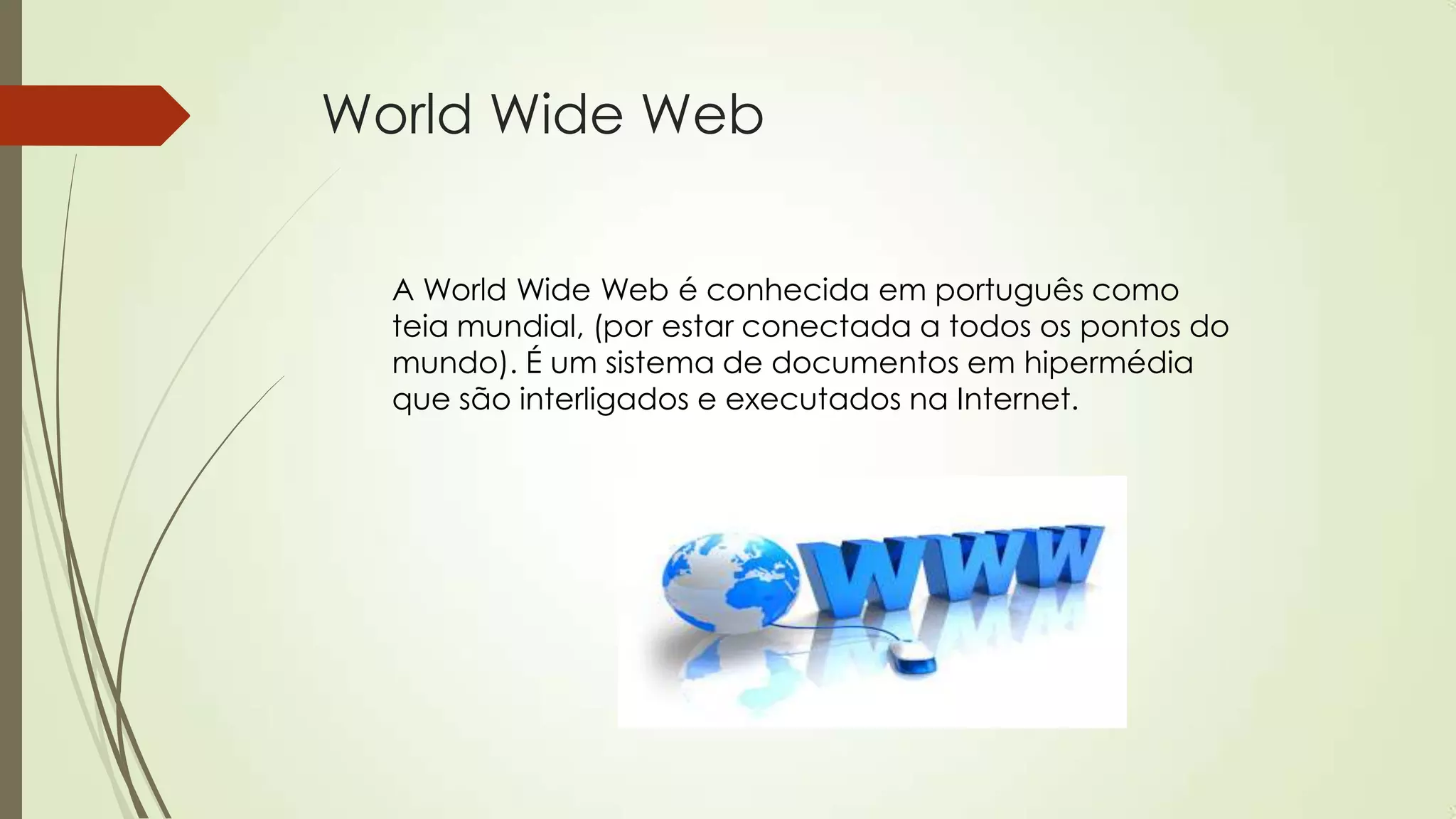 O documento descreve a evolução da World Wide Web desde sua criação por Tim Berners-Lee no CERN em 1991 até a Web 3.0 atual. Detalha as principais etapas da Web 1.0, estática, da Web 2.0 interativa e da emergente Web 3.0 focada na interação homem-máquina. Explica também brevemente como funciona uma página web e os padrões fundamentais da Web.