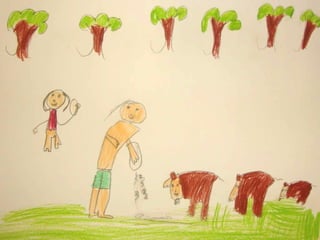 A teoria do Big Bang explica que o universo surgiu há cerca de 15-20 bilhões de anos de uma grande explosão, formando galáxias e o Sistema Solar. A Terra formou-se há milhões de anos como um planeta quente e vulcânico, arrefecendo para permitir a emergência da água e da vida, inicialmente em forma de células simples na água. Ao longo de milhares de anos, seres vivos evoluíram para fora da água, incluindo dinossauros e répteis