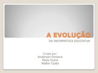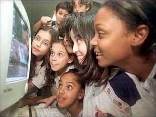 O documento discute a evolução da informática educativa no Brasil. Argumenta que, embora a tecnologia possa quebrar barreiras, estudos mostram que não aumenta necessariamente o desempenho dos alunos ou garante educação de qualidade. Além disso, a maioria dos professores brasileiros tem relações conflituosas com a informática educativa devido a limitações de visão e qualificação.