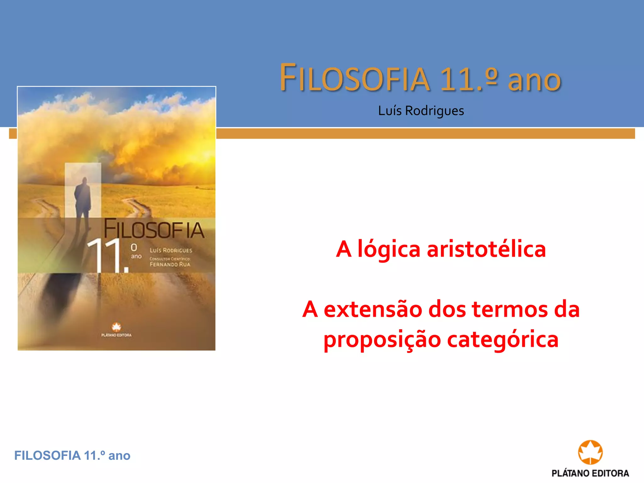 1) O documento discute a extensão dos termos nas proposições categóricas aristotélicas. 2) Ele explica que o sujeito é distribuído nas proposições universais e não nas particulares, enquanto o predicado é geralmente particular nas afirmativas e universal nas negativas. 3) Fornece exemplos e regras para determinar a quantidade do predicado.