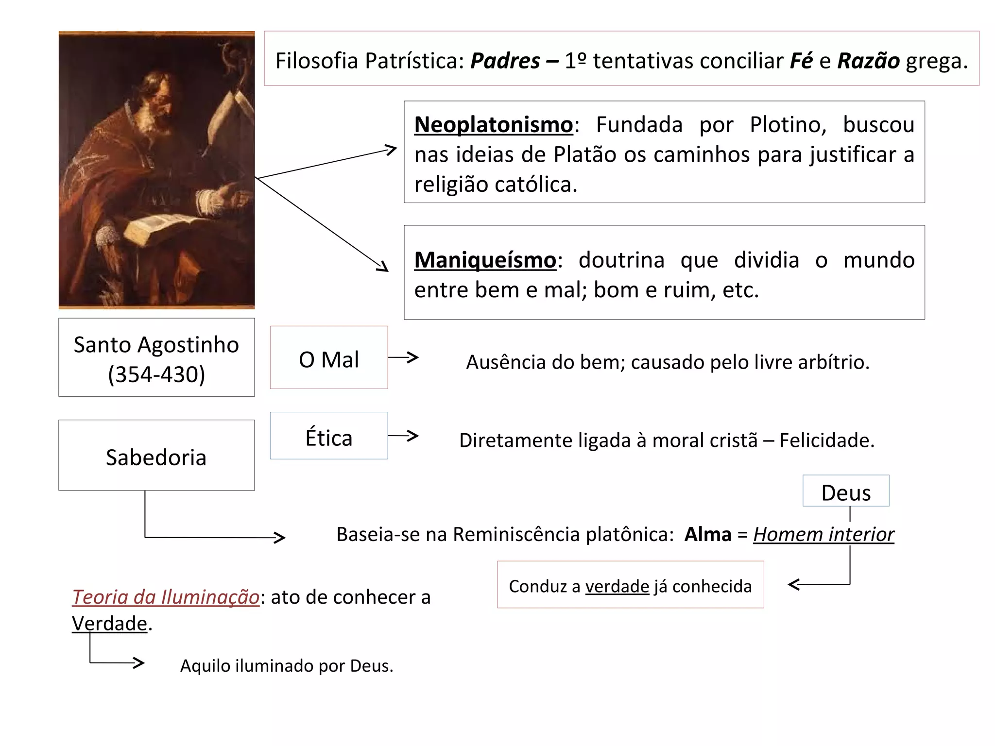 2) Santo Agostinho acreditava que o mal era a ausência do bem e que a ética estava ligada à moral cristã.