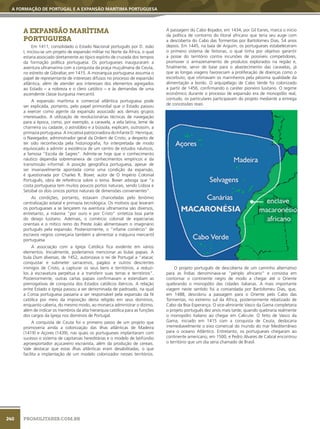 O documento aborda a formação do reino de Portugal e sua expansão marítima entre 1139 e 1385, destacando a luta pela independência em relação a Leão e as rivalidades com a Espanha. Através da centralização monárquica e apoio da Igreja Católica, Portugal se tornou um estado nacional que promoveu a expansão comercial e territorial, culminando em conquistas notáveis como a tomada de Ceuta em 1415. A análise também menciona a importância das inovações náuticas e o papel das elites na política e no comércio, estabelecendo os fundamentos para a era das grandes navegações.