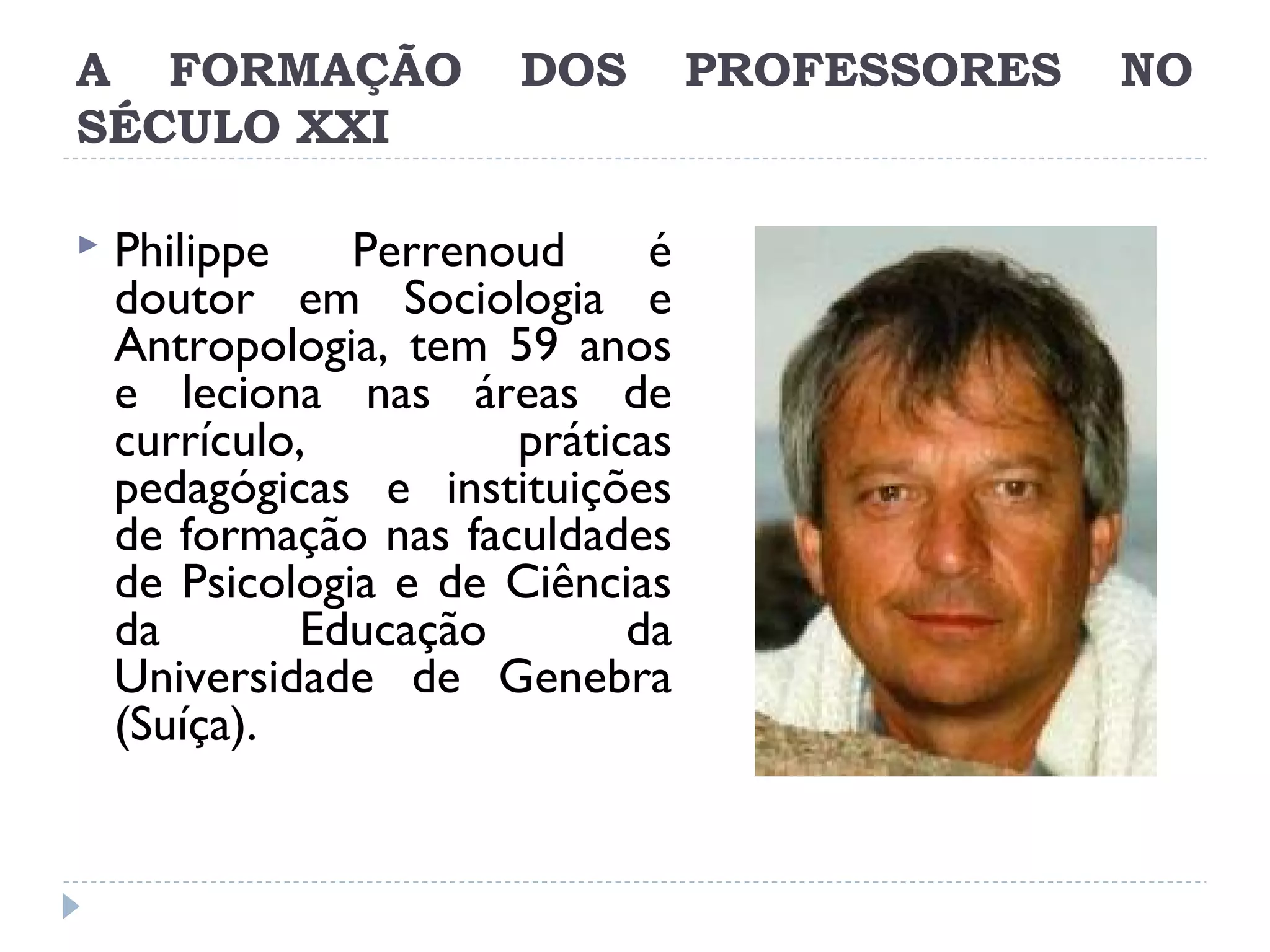 O documento discute orientações para a formação de professores no século 21. Aborda temas como as finalidades da escola e da formação docente, competências necessárias para professores, a articulação entre teoria e prática, e a importância de uma avaliação formativa baseada na análise do trabalho docente. Defende uma formação centrada nos problemas da sala de aula e na aprendizagem por meio de casos práticos.