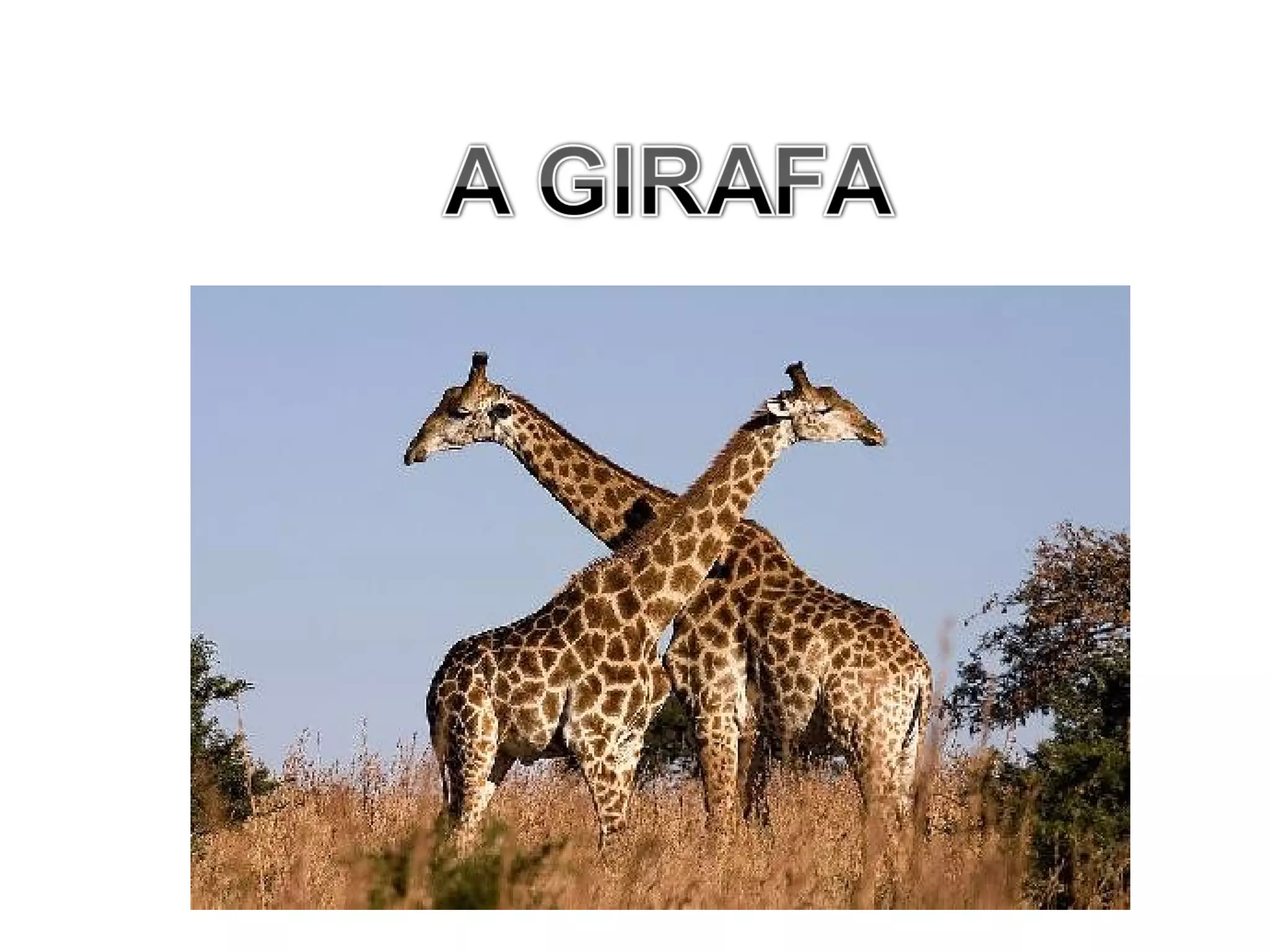 A girafa é um mamífero ruminante que vive nas savanas africanas. Pode alcançar 5,3 metros de altura e se alimenta principalmente de folhas de árvores, precisando comer grandes quantidades devido ao baixo teor nutritivo. Apesar de seu tamanho, pode correr até 47 km/h para fugir de predadores como leões.