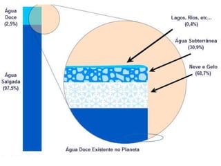 volume apenas 35 milhões de Km3 são de água doce (2,5 %) e