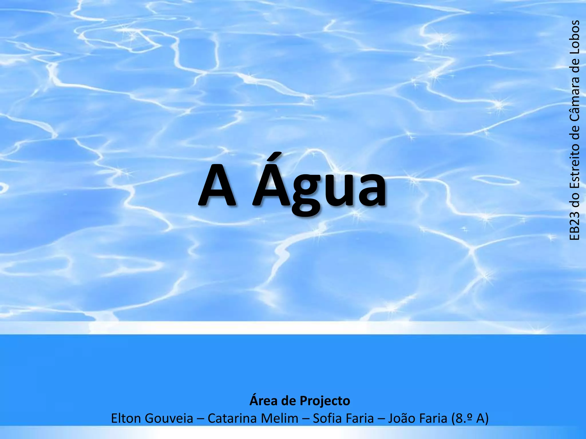 O documento discute a importância da água, como poupar e evitar a poluição da água. Explica que a água é essencial para a vida e origem da Terra, e discute os tipos de poluição da água, causas, consequências e formas de tratamento de águas residuais.