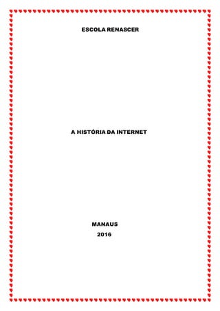 O documento descreve a história da internet, começando com sua criação pela ARPA nos EUA durante a Guerra Fria para fins militares de comunicação. Explica como a internet se tornou acessível ao público geral com a invenção da World Wide Web e como o Brasil começou a ter acesso à internet na década de 1980.