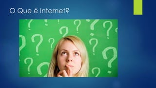 1) O documento descreve a história da internet, desde sua origem militar na década de 1960 até os dias atuais.