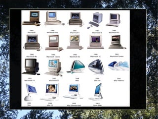 O documento resume a evolução dos computadores e da internet, desde as primeiras mensagens transmitidas por fio até o desenvolvimento da internet nos anos 60 e 70, incluindo a criação dos pacotes de dados, dos emoticons e dos primeiros vírus de computador.