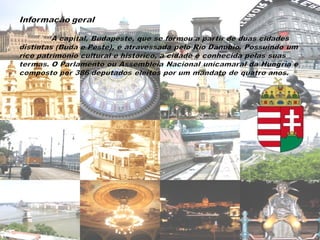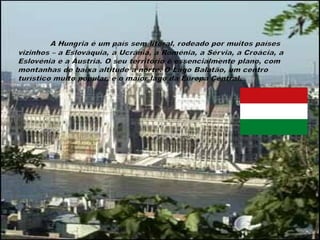 A Hungria é uma república localizada na Europa Central que se juntou à União Europeia em 2004. Sua capital é Budapeste e sua população é de aproximadamente 10 milhões de habitantes. A Hungria tem um clima temperado continental com invernos frios e úmidos e verões quentes.