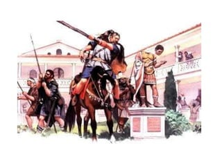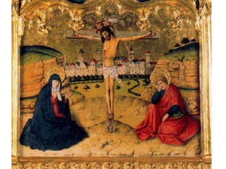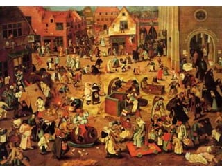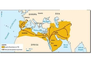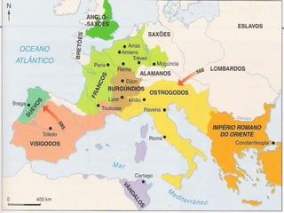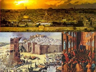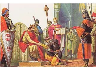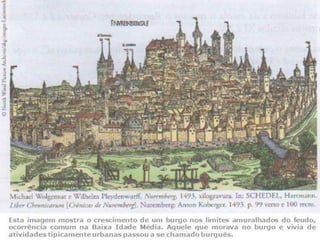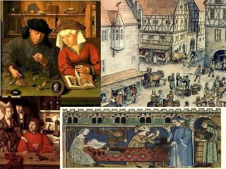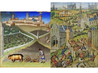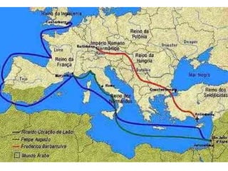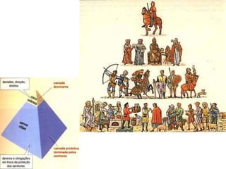 O documento descreve aspectos da economia, religião, educação, arte e cultura da Idade Média, assim como as Cruzadas, a Peste Negra e revoltas camponesas. A economia era majoritariamente agrícola e baseada no sistema feudal. A Igreja Católica dominava a religião e influenciava fortemente a sociedade. A educação era restrita à nobreza e marcada pela religião. A arte também era influenciada pela religião. As Cruzadas foram campanhas militares entre cristãos e muçulmanos