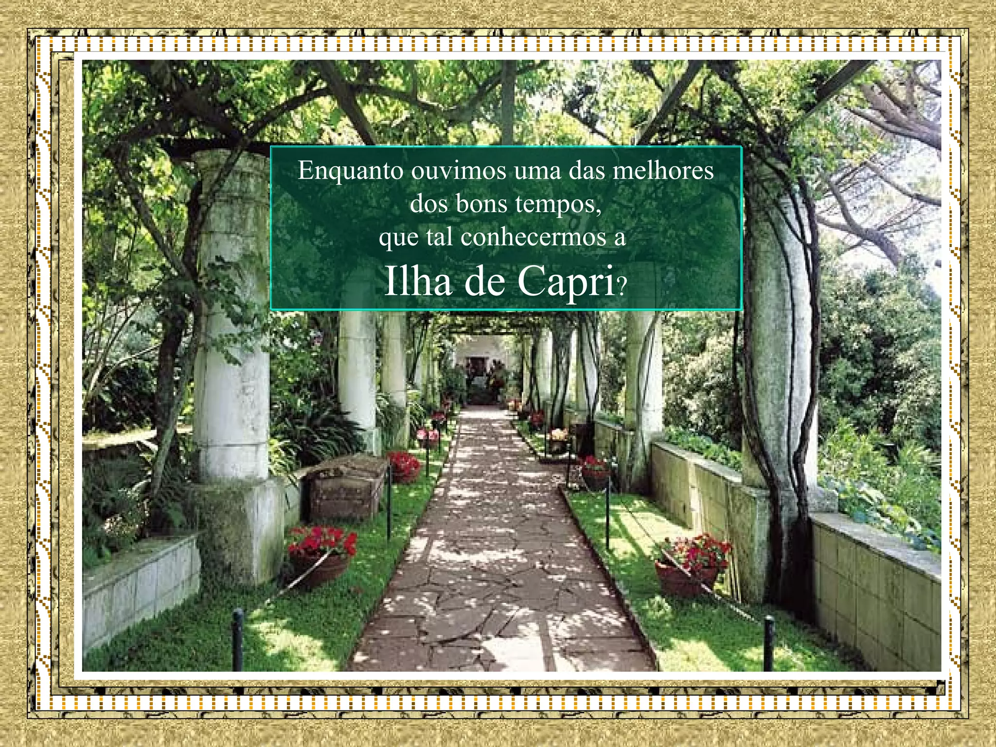 A ilha de Capri é uma pequena ilha no Mar Mediterrâneo conhecida por suas belas paisagens, luxuosos hotéis e restaurantes caros. A ilha atrai cerca de 2 milhões de visitantes por ano entre junho e setembro, quando a temperatura é amena e muitos estabelecimentos estão abertos. Embora pequena, com apenas 6 km de extensão, Capri oferece atrações como grutas, fábricas de perfume antigas e vistas panorâmicas dos seus penhascos e da cidade de Sor