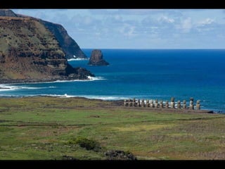 A Ilha da Páscoa é um remoto local no Oceano Pacífico pertencente ao Chile, notável por suas enormes estátuas de pedra chamadas moáis, construídas por uma antiga cultura polinésia. Os moáis, alguns com até 10 metros de altura, são um mistério arqueológico em termos de sua construção e transporte.