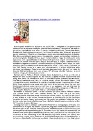 1) O livro conta a história de um jovem chamado Jim Hawkins que encontra um mapa do tesouro escondido de um pirata.