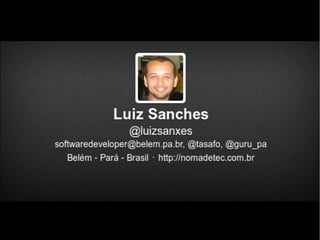 O documento discute a linguagem de programação Ruby e o framework Rails. Apresenta uma breve história da linguagem Ruby e como ela é orientada a objetos e fácil de usar. Também descreve os principais componentes do framework Rails, incluindo MVC, Model, View, Controller e ferramentas como o servidor, console e Rake.