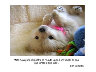 O documento apresenta diversas citações sobre a relação entre humanos e cães. Em três frases ou menos, o documento resume que cães são animais leais e amorosos que trazem alegria para as pessoas, e que a relação entre eles é baseada no afeto e na confiança mútua.