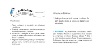 O documento discute a matemática como um texto e como ela pode ser usada para desenvolver habilidades de comunicação e compreensão em outras áreas. Ele explica como representar, falar, escutar, escrever e ler são habilidades matemáticas importantes e como a matemática está presente em diversos tipos de textos na sociedade. Também discute a importância de sequências didáticas planejadas para ensinar matemática de forma integrada a outros assuntos.