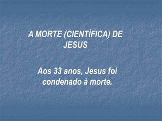 O documento descreve os detalhes gráficos da crucificação e morte de Jesus. Afirma que Jesus foi pregado em seus pulsos com pregos de 15-20 cm e sofreu por mais de 3 horas antes de morrer, perdendo todo o seu sangue equivalente a 3,5 litros. Conclui convidando o leitor a orar por outras pessoas e compartilhar a mensagem para mostrar seu amor a Deus.