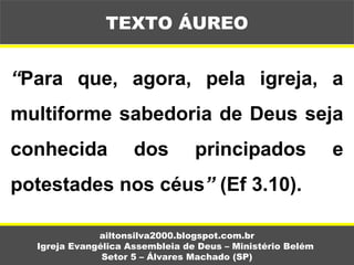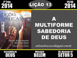1) O documento discute a "multiforme sabedoria de Deus" que é manifestada através da igreja e dos dons espirituais.