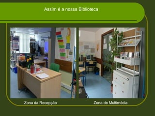 Este documento descreve a inauguração e as atividades iniciais da biblioteca escolar no ano letivo de 2009/2010, incluindo a participação de autores, projetos com a biblioteca municipal, e eventos como o Natal, o Dia da Mãe e o Dia da Criança.