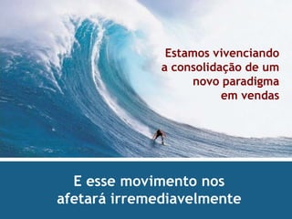 O documento discute a importância de vender agregando valor ao cliente através de um processo comercial orientado às necessidades do cliente. Apresenta a evolução do modelo de vendas de 1.0 para 2.0 e 3.0, com foco no vendedor como gestor de negócios que cria valor. Defende que valor deve ser percebido e único para o cliente, não baseado em preço, e que o foco deve estar no processo de execução comercial alinhado às demandas do cliente e da organização de forma sustentável.