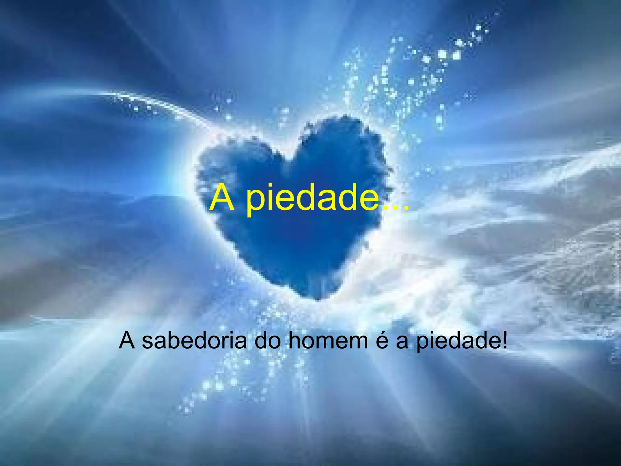 O documento discute a importância da piedade, definida como a compaixão e simpatia espontânea que sentimos pelos sofrimentos dos outros. A piedade nos aproxima de Deus e nos leva a praticar a caridade, aliviando o sofrimento do próximo. A piedade é a sabedoria e a única maneira de sermos verdadeiramente felizes.