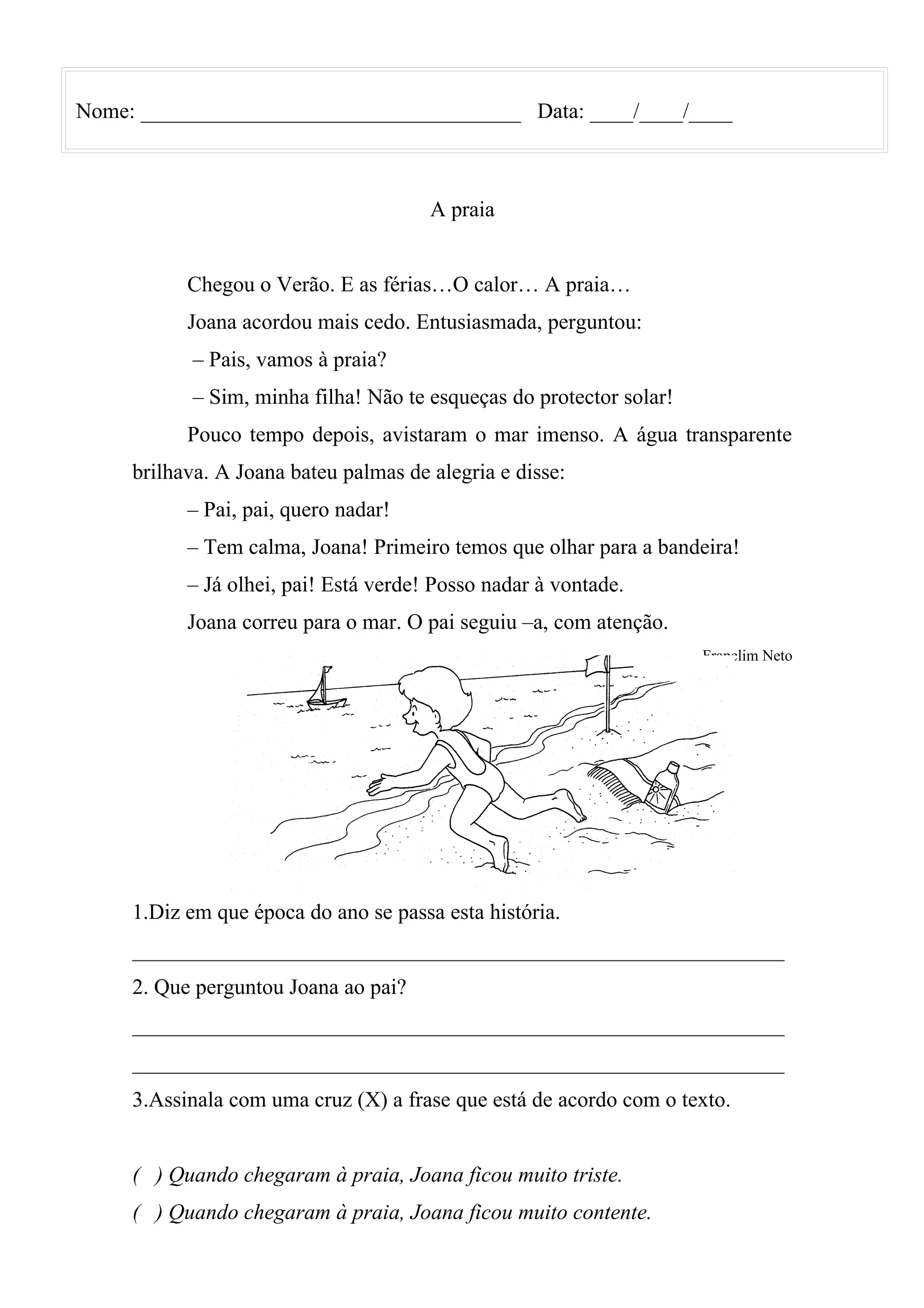 ( ) Quando chegaram à praia, Joana ficou muito contente.