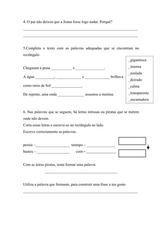 5.Completa o texto com as palavras adequadas que se encontram no