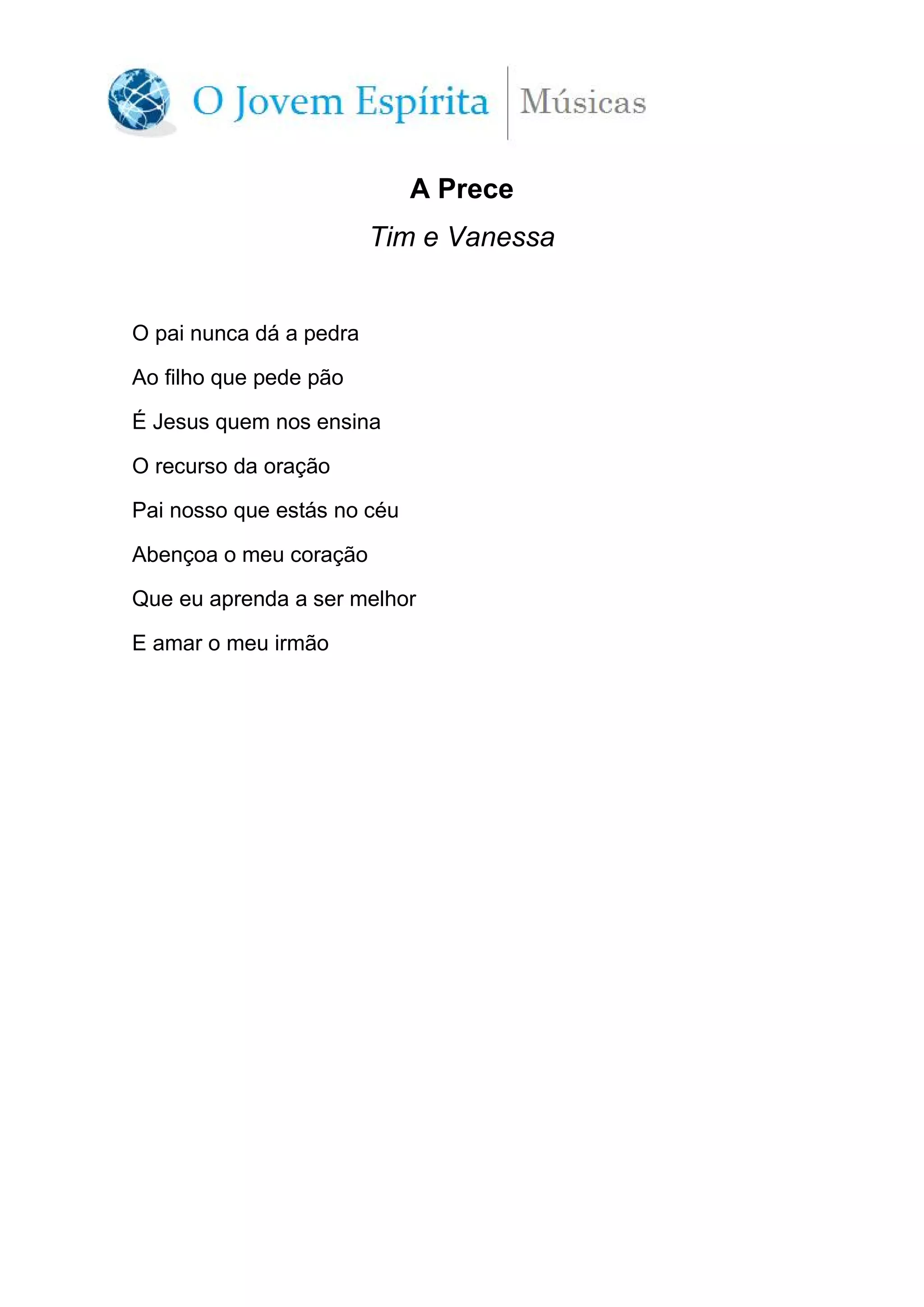A prece fala sobre a importância da oração e como Jesus ensinou que devemos orar ao Pai celestial, pedindo que nosso coração seja abençoado para que possamos aprender a ser melhores e amar nosso próximo.