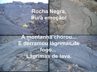 O documento descreve a ilha do Pico, suas rochas negras formadas por lava e como elas moldaram a paisagem da ilha. As rochas negras protegem a ilha e abrigam vinhas, dando suporte à vida humana e animal. A ilha do Pico é descrita como mágica por guardar os segredos do amor entre a montanha e o mar.