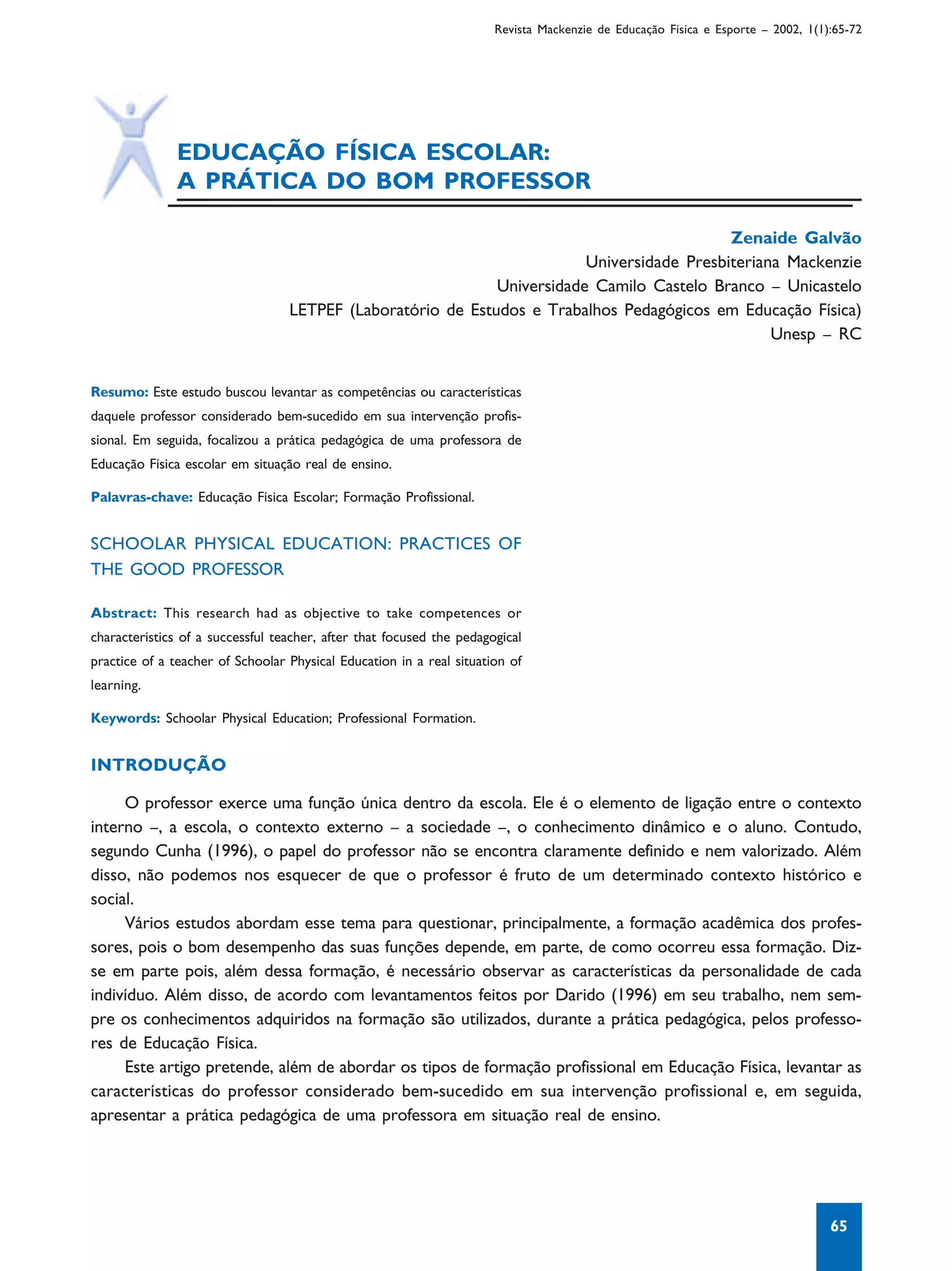 1) Dois tipos de formação profissional em Educação Física - tradicional e científica.