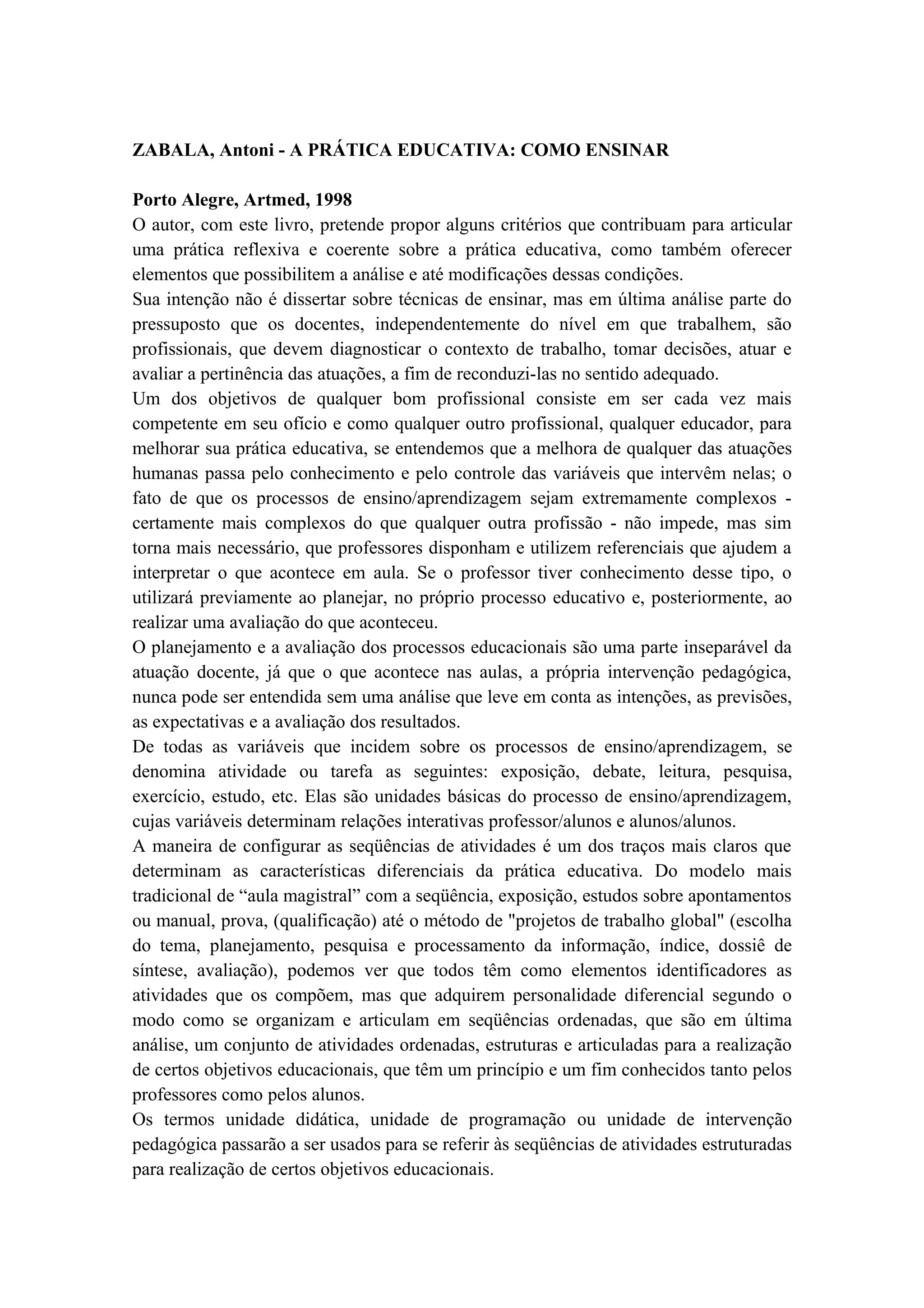 O documento discute a prática educativa e como ensinar de forma reflexiva. Ele propõe que professores devem diagnosticar o contexto, tomar decisões e avaliar continuamente seu trabalho para melhorá-lo. Também discute diferentes tipos de conteúdos e como ensiná-los de forma significativa, levando em conta os processos de aprendizagem dos alunos.