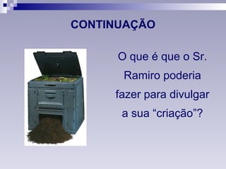 CONTINUAÇÃO O queé que o Sr. Ramiro poderia fazer para divulgar a sua “criação”?