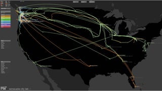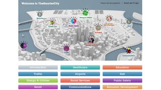 O documento discute como as cidades estão se tornando cada vez mais integradas com a tecnologia e redes digitais, levando à emergência de conceitos como "cidade inteligente" e "cidade sentiente". Isso trará profundas transformações na forma como as pessoas interagem com o ambiente construído e se locomovem pela cidade. Alguns questionam se isso poderia levar a uma versão do século 21 da cidade fantasma.