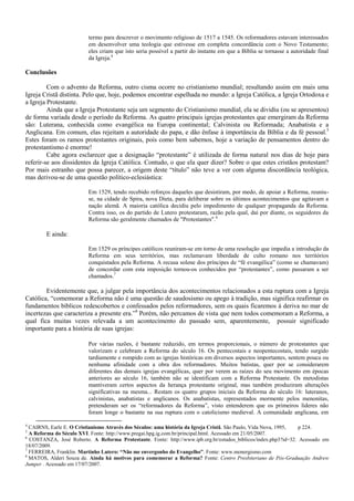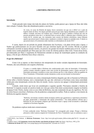 A Reforma Protestante foi um movimento religioso do século XVI que questionou a autoridade do papa e buscou trazer a Igreja cristã de volta à submissão completa às Escrituras Sagradas, resultando no surgimento das igrejas protestantes como a Luterana, Calvinista, Anabatista e Anglicana.