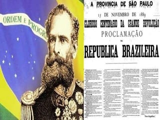 O documento descreve o período da República Velha no Brasil (1889-1930), dividido em República das Espadas e República Oligárquica. A República das Espadas foi liderada por militares, enquanto a República Oligárquica foi dominada por fazendeiros de café. O documento também menciona revoltas como a da Vacina e da Chibata, além de movimentos como a Semana de Arte Moderna e a Coluna Prestes que contestaram o regime oligárquico.