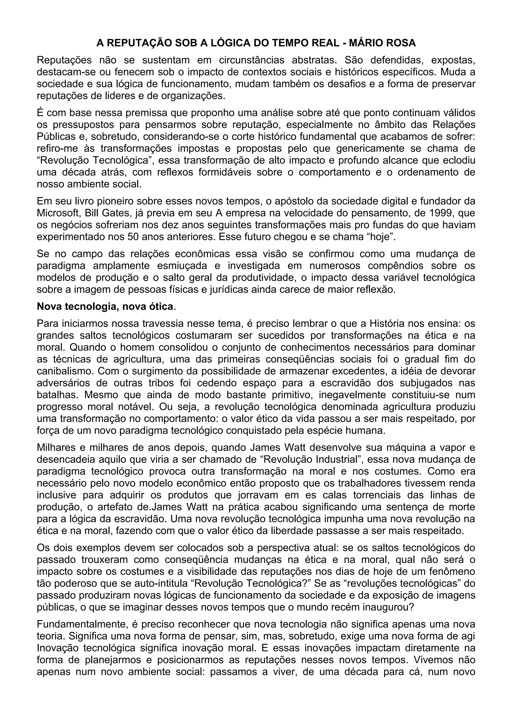 1) A reputação de líderes e organizações mudou com a revolução tecnológica, já que erros podem ser expostos globalmente em tempo real.