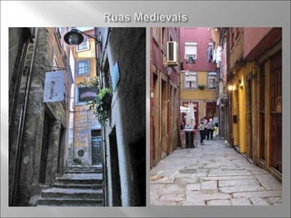 1) O documento descreve a história do desenvolvimento da zona ribeirinha do Porto ao longo dos séculos, desde vestígios romanos até construções do século XVIII.