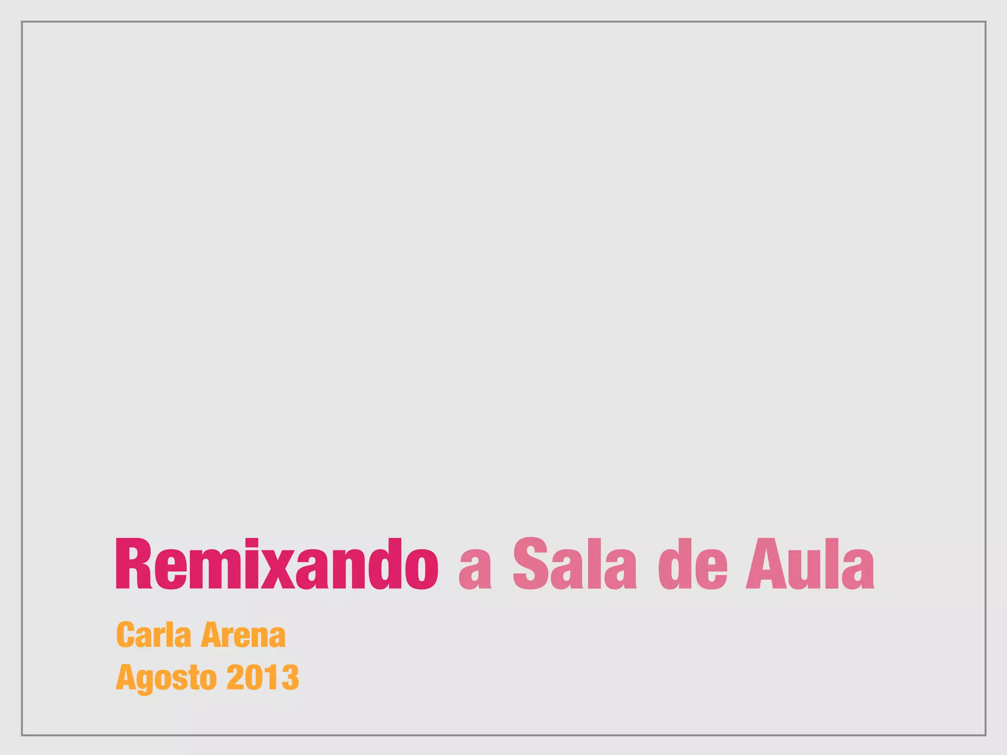 O documento discute a integração da tecnologia na sala de aula em três estágios, com foco na produção de conteúdo pelos alunos. Também enfatiza a importância de prender a atenção dos alunos através de experiências de aprendizagem marcantes e estimulantes, como a "vaca roxa", usando ferramentas digitais de forma criativa.