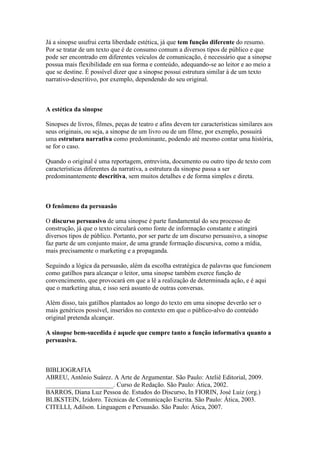 Esta postagem aborda a sinopse, um texto que resume informações de outra obra com características distintas em relação ao resumo. A sinopse é mais livre em sua estrutura e linguagem, destinando-se a leitores não especializados, e tem um papel persuasivo, muitas vezes utilizada em contextos de marketing. O texto apresenta comparações entre sinopse e resumo, destacando suas diferenças e funções no contexto comunicacional.