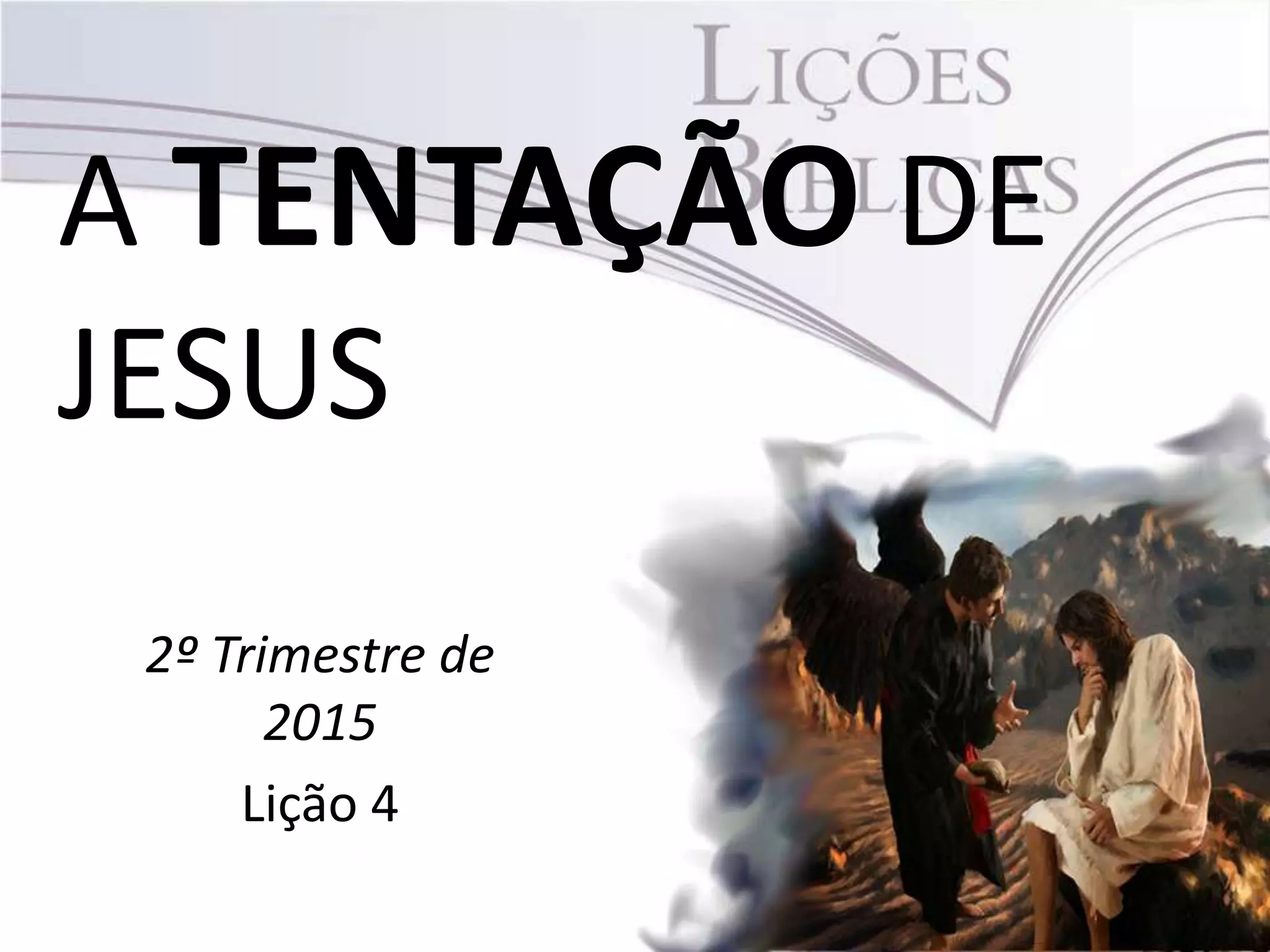 Este documento apresenta uma lição sobre a tentação de Jesus. A lição discute como Jesus foi tentado em três áreas, mas venceu todas as tentações através da Palavra de Deus. A lição tem como objetivo mostrar que, embora a tentação seja uma realidade humana, em Jesus podemos também vencer a tentação.